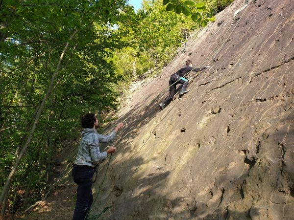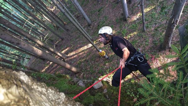 Ačkoliv je Reinhold Messner, legendární horolezec, již v důchodovém věku, na našich skalkách kolem Rožnova by neměl žádný problém. A tak jsme ho malinko nadopovali, aby byla aktivita na Rožnovských plotnách aspoň nějakou výzvou. Závodníci měli za úkol zdolat jednoduchou šikmou stěnu s drobným omezením, jejich ruce a nohy byly do kříže svázané, aby jejich pohyb omezily obdobně, jako to dokáže třeba osteoartritida. Pro dobré lezce jen drobná komplikace, pro ty sváteční opravdová pruda na skále. Děti mohly lézt bez omezení, do kozelce ať si je svážou až doma rodiče.