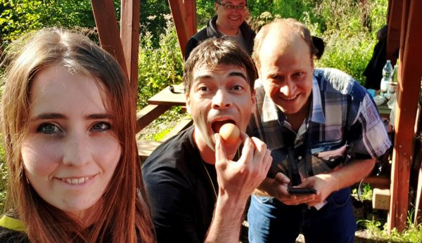 O názvu aktivity jsme dlouho debatovali, což je přesně ta věc, kterou při jejím plnění máte přísně zakázanou, a nemohli jsme se shodnout. Nakonec jsme vybrali název Já nevím, neboť to je jistě převládající myšlenka všech závodníků během plnění aktivity. A o co že jde? Je to úplně jednoduché. Každý závodník pětičlenného družstva stojícího v jedné řadě (chybějící závodníky může suplovat cokoliv, kam jde přilepit kousek papíru) dostane na záda přilepený lístek s jedním písmenem slova o pěti hláskách. Úkolem závodníků je zjistit zadané slovo (a tím písmeno na svých zádech) a seřadit se ve správném pořadí. Splnění úkolu se dává najevo zvednutím paže. Že je to jednoduché? Tak pozor, během plnění úkolu je zakázána jakákoliv forma komunikace, nesmí se mluvit, znakovat ba ani naznačovat. Povoleno je vždy jednomu závodníkovi se pouze podívat na záda všech ostatních a jejich přesunutí v řadě. Nic víc. Strategii jak úkol řešit, je nutné si domluvit předem a navíc o ní informovat orga, aby věděl, zda nepodvádíte. Že se to dá vyskreblit? A není i lepší metoda? Možná, Já nevím...