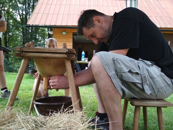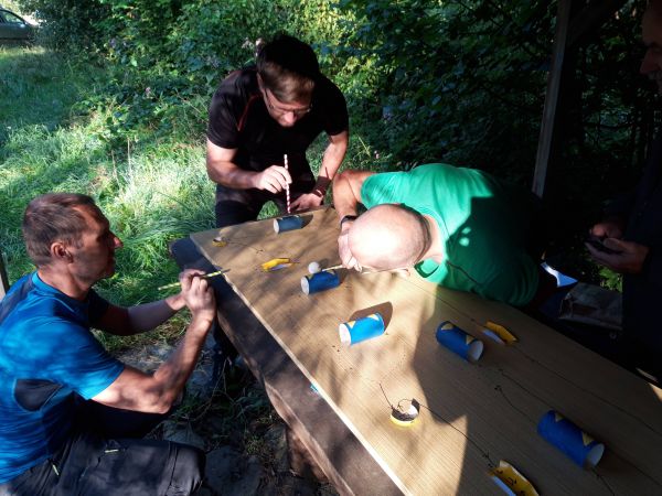 Hrajete na nějaký dechový nástroj, třeba na fagot? A pokud vám to nejde, zanadáváte si? Při hraní na naši novodurovou trubku se hodil dobrý prstoklad, mít to takzvaně v paži a nějaké to úlevné peprné slůvko nemohlo uškodit. Ucpat prsty všechny díry v trubce, napumpovat ruční pumpou vodu až po okraj a vytáhnout plavající PETku, bylo pro sehraný tým otázkou pár minut. A nebo taky ne, stačil malý nepodchycený únik vody, aby se aktivita protahovala a tím stávala obtížnější a obtížnější. A to nejlepší mělo přijít nakonec, když po vytažení PETky a úlevném uvolnění v křeči zkroucených rukou došlo na fyzikální zákony o tlaku sloupce vody. „A jsem celý mokrý, krucinál fagot!“