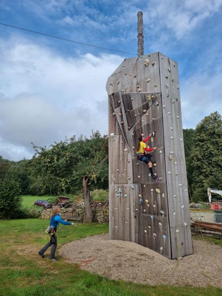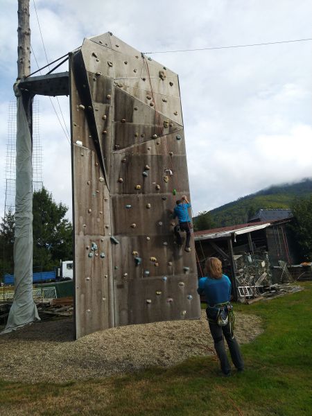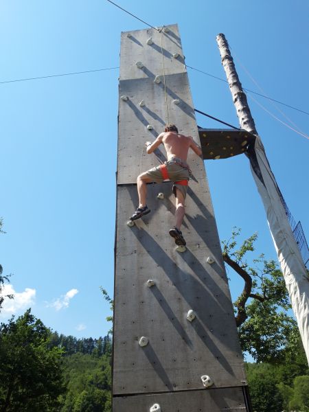 Občas člověk nevěří vlastním očím, co na dědině na zahradě vyroste. A u nás vyrostla desetimetrová lezecká stěna, toho přeci nešlo nevyužít. Jednoduchá disciplína lezení po umělé stěně pod širým nebem, kterou si mohl pod zkušeným dohledem a jištěním majitele vyzkoušet každý. Někteří stěnu vyběhli jak veverka za ořechem, jiným to šlo naopak spíše jak medvědovi pro med, ale zábavu si užili všichni, i betatesteři. Jistým omezením bylo jen počasí, kvůli kterému jsme museli zavřít dříve, ale bezpečnost je pro nás na prvním místě.