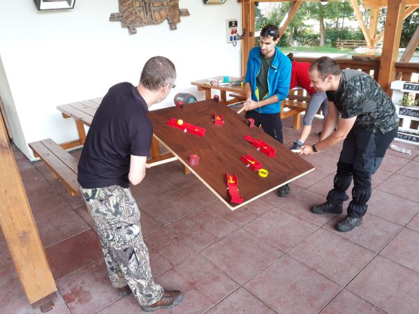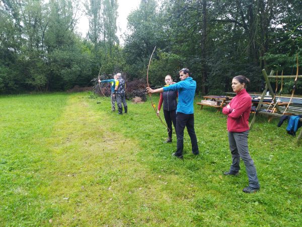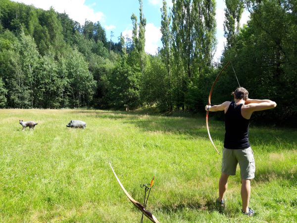 Střelecké disciplíny máme rádi, jsme totiž kvalitně střelení a je potřeba to šířit mezi závodníky. Tentokráte jsme šáhli po luku, ovšem se vší parádou. Střílelo se z profesionálních dřevěných luků, na střelnici, a krom papírových terčů s obrázky zvířátek jsme zařadili i trofejní 3D kusy z pěny, které byly jako živé. Tedy až do příjezdu prvního týmu. Ve střelbě se střídali všichni závodníci a bylo nutno se nejen trefit do terče, ale také trefit dobře. Nejlepší týmy by se neztratily mezi lovci a sběrači či na ukrajinské frontě.